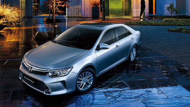 Camry là mẫu sedan thống trị hạng trung cao cấp tại thị trường Việt nam. Với những đối thủ mạnh như Honad Accord, Ford Mondeo, Hyundai Sonata trong phân khúc này thì có lúc thị phần của Camry lên tới 98%. Thế hệ mới của Camry được cung cấp 3 phiên bản là 2.0 e, 2.5 G và 2.5 Q. Cả 3 phiên bản đều có ngoại thất gần như giống nhau: Thiết kế theo phong cách Lexus, đèn HID, cửa không có nẹp. Nội thất thì bản 2.5 Q nổi bật với tông màu đen, màn hình DVD 7″, điều hòa 3 vùng tự động. 2 phiên bản còn lại với ghế da màu ghi, đầu CD, điều hòa 2 vùng, và đặc biệt thế hệ mới 2017 cả 3 phiên bản đều trang bị smartkey, lazang 17″, tăng độ an toàn với full 7 túi khí.